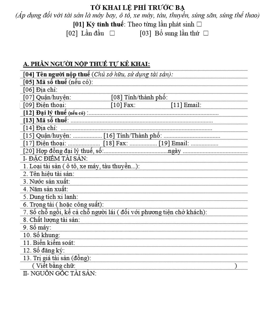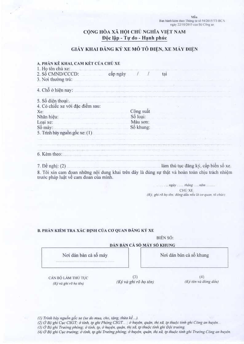 Bước 2: Sau khi nộp thuế trước bạ khi đăng ký biển số xe bạn sẽ được cấp một bộ hồ sơ đăng ký biển xe máy điện. bạn cần điền đầy đủ thông tin xe theo mẫu dưới đây: