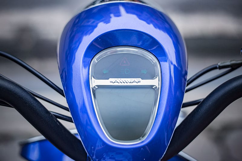 Xe điện Milan 2S chính hãng có dập nổi rõ ràng chữ Aima tại càng trước. Dấu hiệu nhận biết này rất đơn giản, người tiêu dùng chỉ lưu ý là có thể thấy.