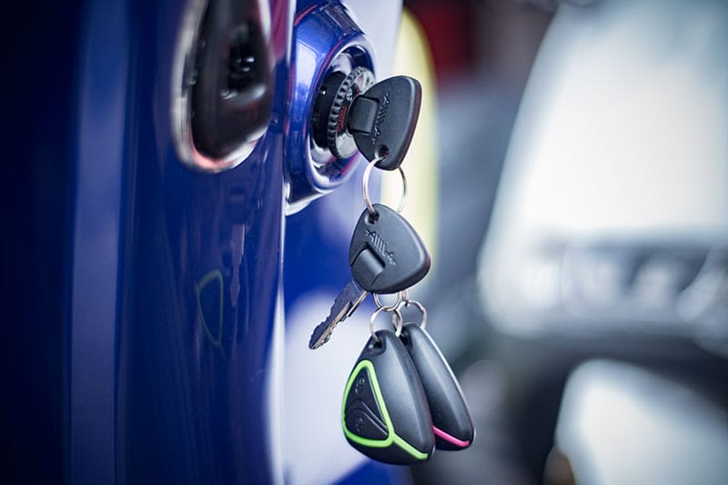 Bộ chìa khóa gồm khóa cơ và khóa điện tử được dập nổi logo Aima.