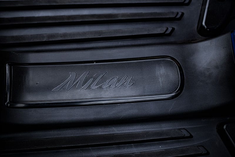 Sàn để chân có dập nổi chữ Milan rõ ràng, sắc nét