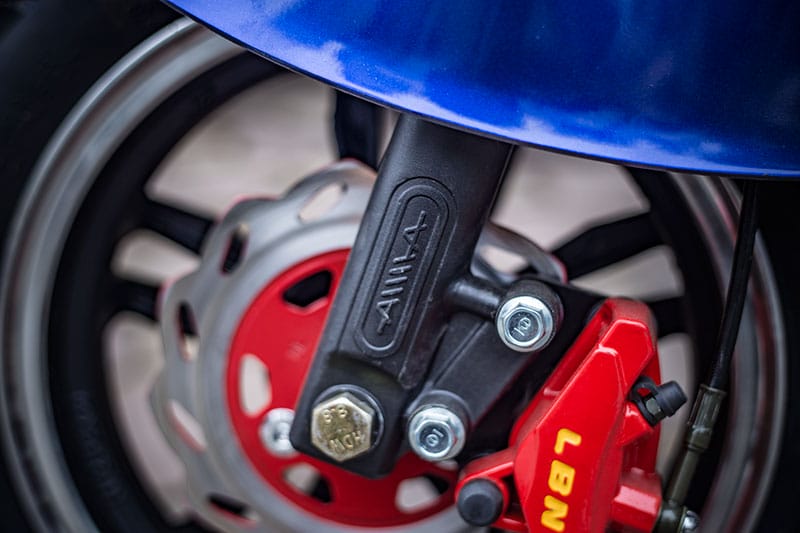 Xe điện Milan 2S chính hãng có dập nổi rõ ràng chữ Aima tại càng trước. Dấu hiệu nhận biết này rất đơn giản, người tiêu dùng chỉ lưu ý là có thể thấy.