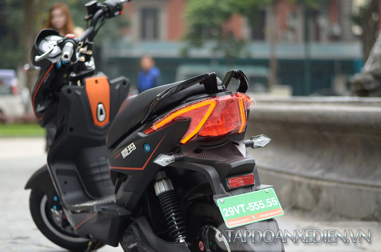 Điểm nhấn trong mẫu xe Aima Challenger là phần đuôi xe với thiết kế mang hơi hướng của một chiếc xe mô tô phân khối lớn, vuốt lên về phía sau tạo hiệu ứng động học giúp xe lướt đi nhanh và êm ái. Hai xi nhan sau tạo nét thẩm mỹ cao cho xe đồng thời giúp xe di chuyển an toàn hơn.