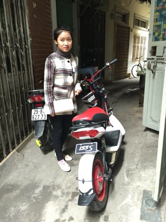 Chị Thùy Dung ( Ba Đình) bẽn lẽn bên chiếc Giant M133S Plus