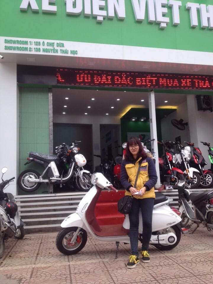 “Em định mua xe trước Tết nguyên đán. Em cũng đã xem nhiều xe và đang phân vân giữa xe đạp điện Vespa với Nijia , Xe Vespa khá là đẹp, hợp với con gái nhiều hơn trong khi Nijia được sử dụng nhiều, mấy đứa bạn em đều sử dụng Nijia hết” con gái cô Giang chia sẻ. Sau khi cân đối với tài chính gia đình và lắng nghe ý kiến của con gái, Cô Giang quyết định chọn mua mẫu xe Vespa Prima với giá 12,6 triệu đồng. Nhân viên tại cửa hàng ở địa chỉ 125 Ô Chợ Dừa cho biết thêm : “đây là mẫu xe bán chạy nhất hiện nay, xe rất phù hợp với địa hình ở nước ta. Ở bên cửa hàng mình đang chạy chương trình “ Năm mới vui vẻ - mua xe cực rẻ” nên giá xe được giảm từ 1,5 đến 3 triệu cho một mẫu xe. Cô Giang mua xe đúng vào dịp cửa hàng đang chạy chương trình nên giá xe đang rất rẻ”