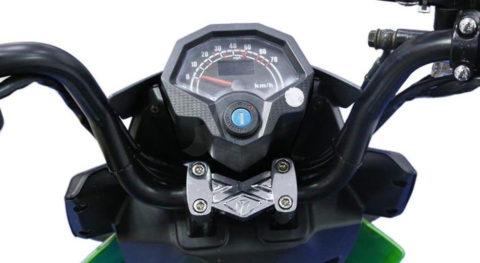Đầu xe thiết kế đơn giản nhưng không kém phần tinh tế, nổi bật với công nghệ phun sơn tĩnh điện màu đen rất chất. Mặt đồng hồ với những góc cạnh nhưng không hề thô chút nào, thể hiện vận tốc đang đi, quãng đường đi được một cách chính xác. Xe có khả năng đi với vận tốc tối đa 55km/h - một vận tốc đầy kinh ngạc.